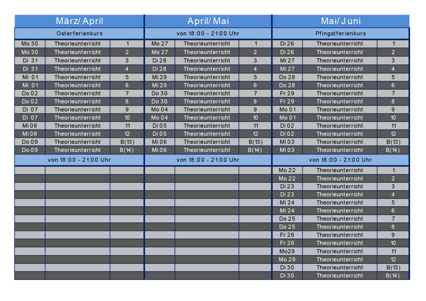 Hier findest du unseren aktuellen Theorieplan.